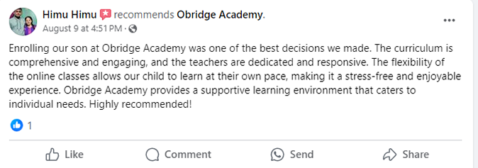 With Obridge Academy, students have the freedom to learn whenever and wherever it works best for them. Whether at home, on vacation, or anywhere with an internet connection, our online platform – Blackboard learning management system ensures a seamless learning experience.